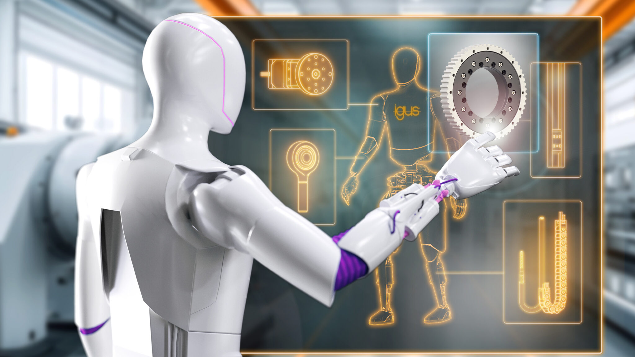 Oma liikuvplastidega pakub igus humanoidroboti süsteemide töökindlust tagavaid määrdevabu komponente: alates hooldusvabadest sfäärilistest laagritest sõrmedes kuni äärmiselt paindlike chainflex kaabliteni kereosas kuni jalgu liigutavate lineaarajamiteni. “Siiski on oluline, et komplekssete automatiseerimislahenduste integreerimine muutuks kasutajatele kättesaadavaks ilma ekspertteadmiste või suurte kuludeta,” selgitab Alexander Mühlens, iguse kulutõhusa automatiseerimise äriüksuse juht.